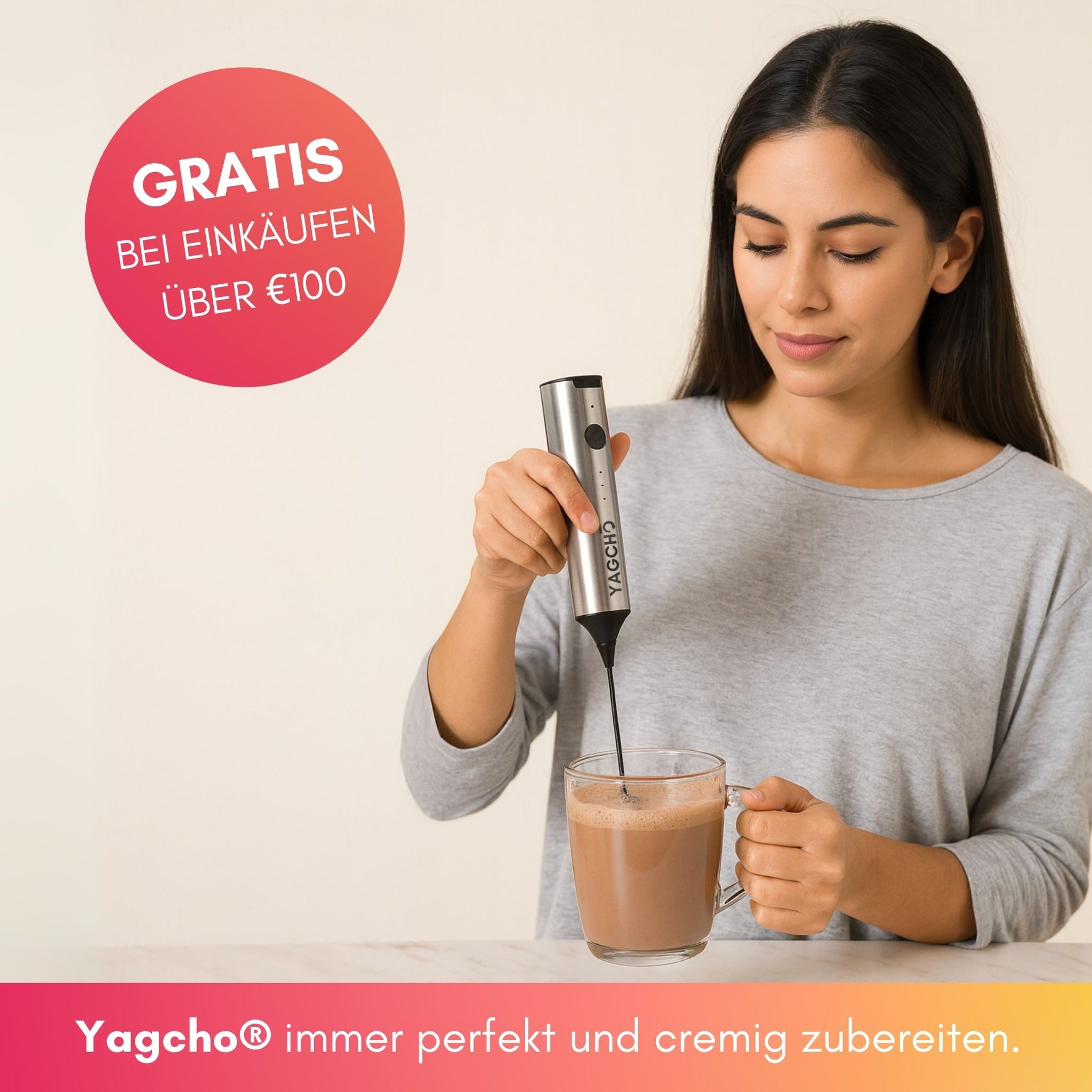 Der perfekte tägliche Begleiter, um deine Heilpflanzen-Mixes im Handumdrehen cremig zu mixen – egal ob zuhause, in der Natur oder im Büro. ✓ Leistungsstarker Motor für feine, homogene Ergebnisse ✓ Ergonomischer Griff für sicheres und komfortables Mixen ✓ Edles und minimalistisches Design ✓ Eignet sich perfekt für die Zubereitung von Yagcho Produkten ✓ Hochwertige Materialien – 100% frei von Schadstoffen